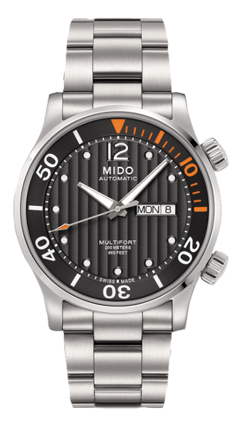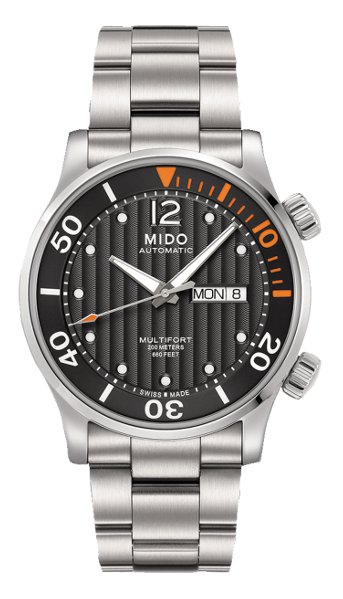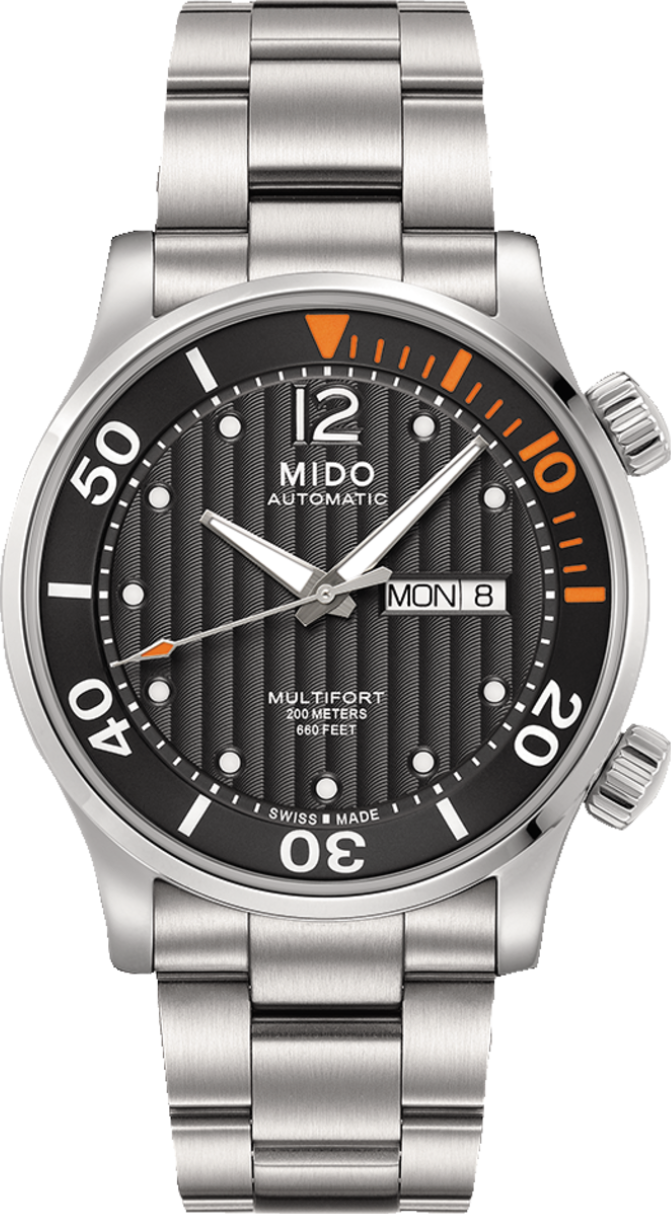 Funkce:Čas, datum, strojek swiss Mido caliber 80 (Eta C07.621) - vyráběn firmou Eta exklusivně pro Mido = 25 kamenů (krokové ústrojí ocel/kámen), rezerva chodu 80 hodin, polokmity setrvačky 21.600/h = přesnost chodu 3 - 5 vteřin denně (nižší polokmity setrvačky jsou vyladěny jemnou regulací na věnci setrvačky pro maximální přesnost strojku), ozdobně lapovaný rotor, automatický nátah (pohyb ruky) + ruční nátah (hodinky lze také natahovat i korunkou)), průhledné zadní víčko pro náhled na strojek, svítící ručičky a indexy, vodotěsná šroubovací korunka